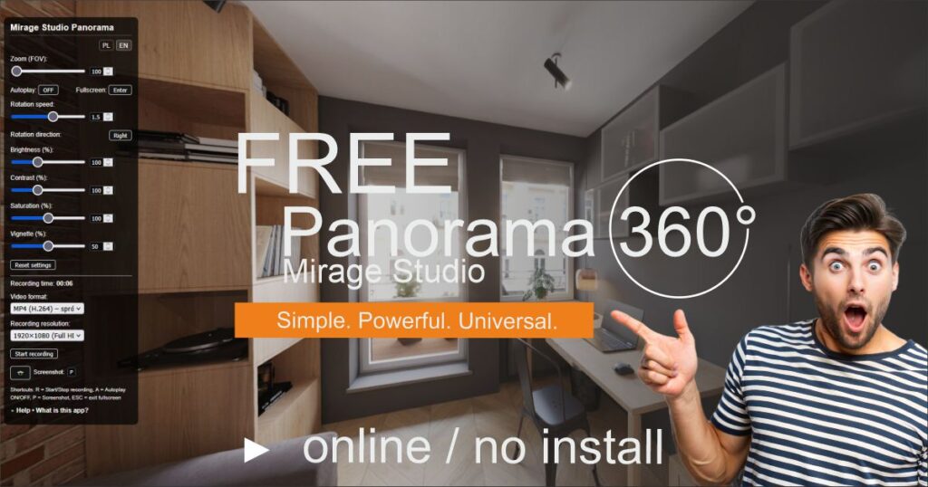 Darmowa przeglądarka panorama 360° i wizualizacji wnętrz online